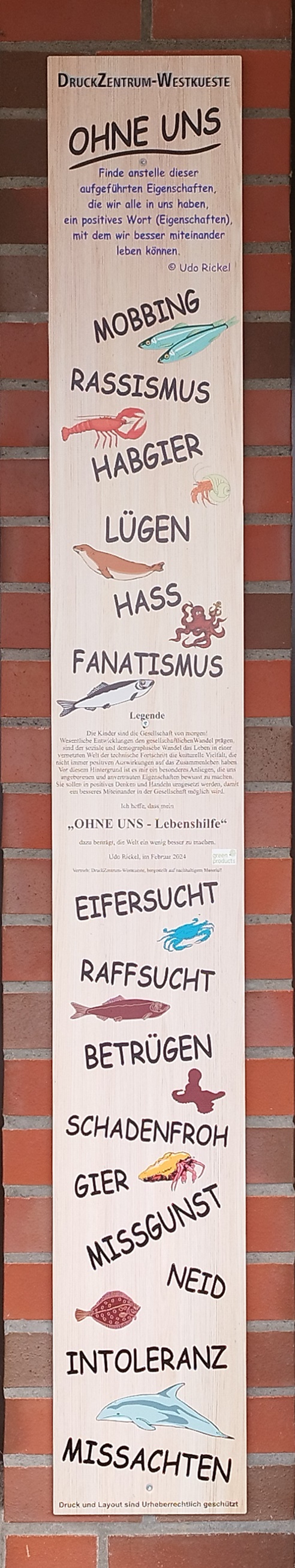 3. Die bedruckte Tafel für die Wandmontage, für Innen und Außen